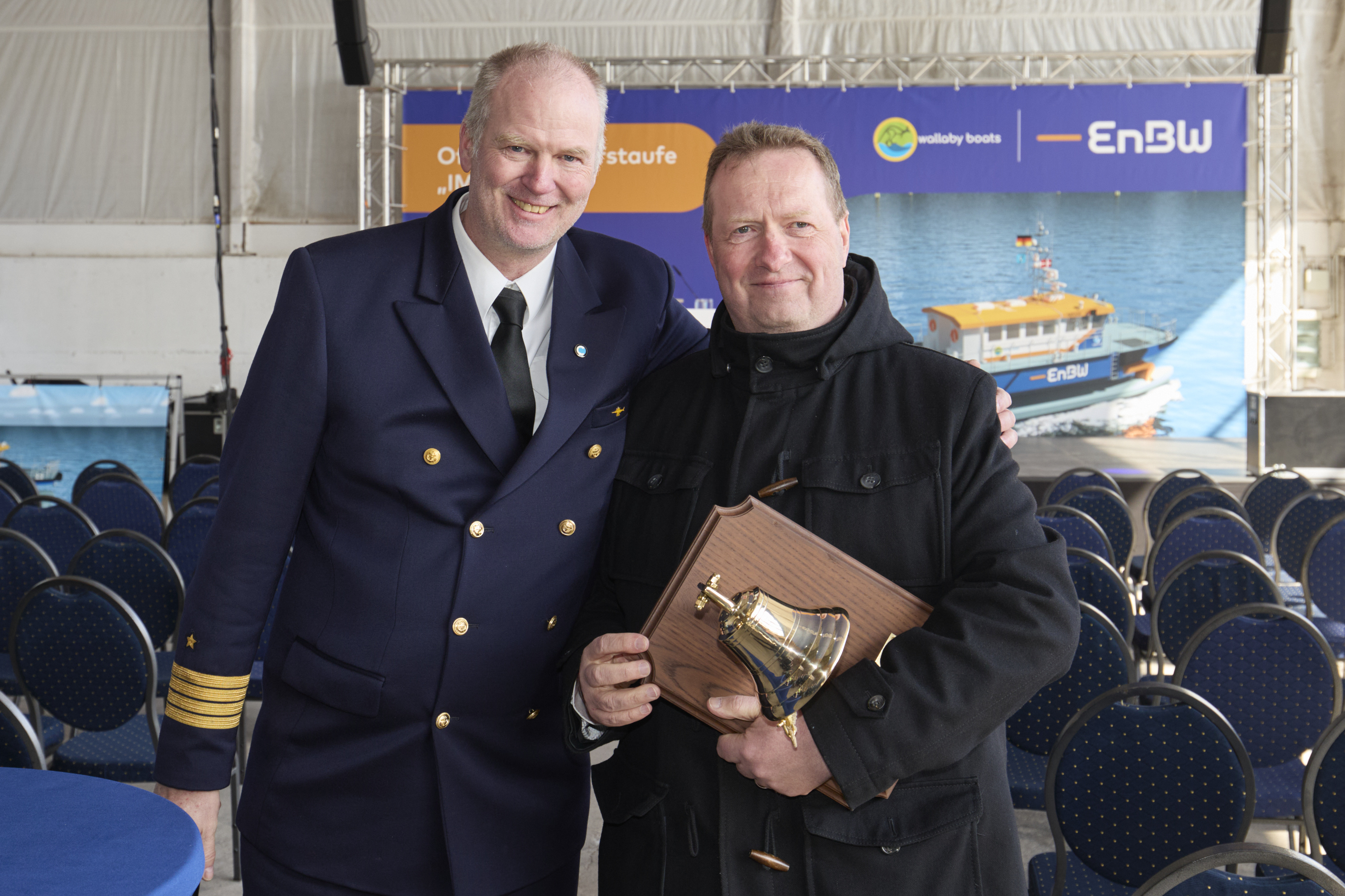 The inventor of the suspension system and founder of Nauti Craft, Chris Heyring has sent his greetings and best wishes to the vessel, the godpartents and the whole team from EnBW, Wallaby Boats and OFFCON.
