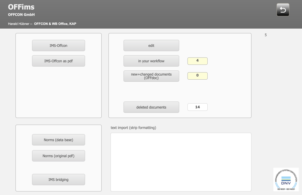 OFFims is a DNV certified controlled document tool for the Integrated Management System of ISO 9001, 14001, 45001 and the ISM-Code. A structured and stingent workflow provides for easy cooperation of the management team.
